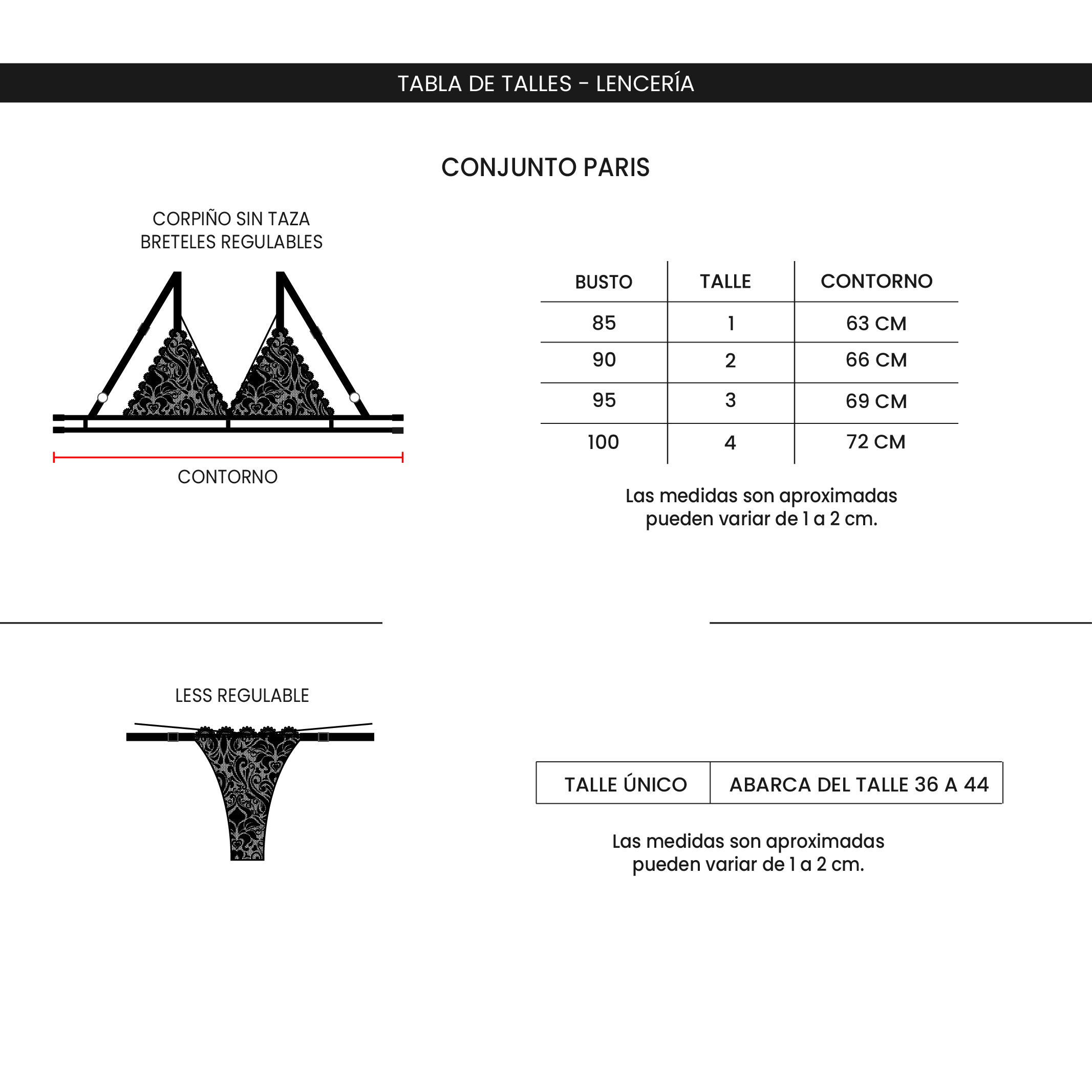 PACK X12 SURTIDO EN COLOR Y TALLE DEL 85 AL 100 - CONJUNTO TRIÁNGULO SIN TAZA - PUNTILLA DOBLE CINTURA EMBUTIDA DE 2 CM - LESS REGULABLE, DOBLE ELÁSTICO.